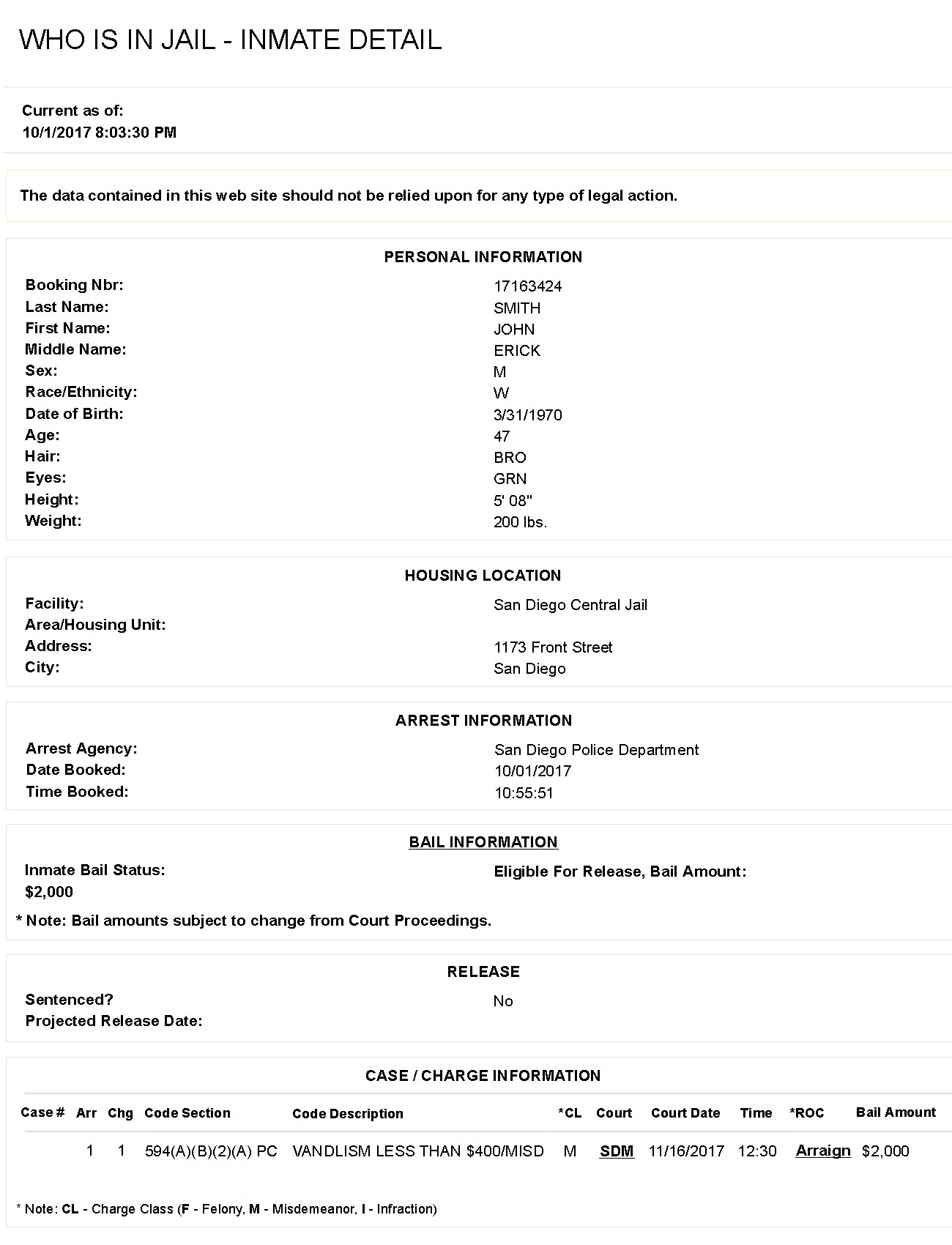 CRIMINAL RECORDS FROM SAN DIEGO COURTHOUSE (APRIL 1999 AND MAY 2007)