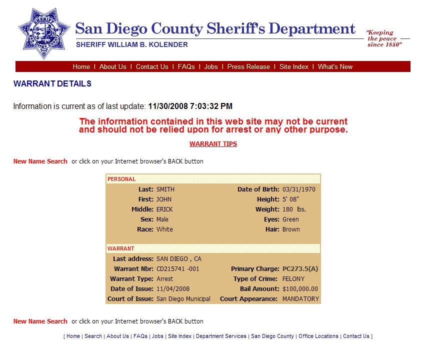 ARREST WARRANT FOR DOMESTIC VIOLENCE (NOVEMBER 2008)